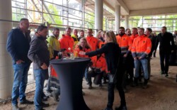Dass der Zeitplan nach wie vor sportlich ist, zeigte sich auch daran, dass einige Handwerker selbst während des Richtfestes noch weiterarbeiteten. Denn neben dem Ziel, dass der Umzug des Gymnasiums noch während des kommenden Schuljahres erfolgen soll, gibt es da auch noch eine Zusage des Bauherren an Schloß-Schulleiter Raimund Millard, dass der den Umzug noch in seiner aktiven Dienstzeit erleben soll.