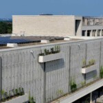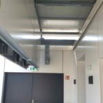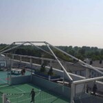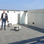 Die vorher enmal aus dem Boden des Beobachtungsraums ragenden Entlüftungshütchen des Stockwerks darunter sind verschwunden. Auf die Information hin, dass Teleskope in nicht-beheizte Räume kommen, die sozusagen das Klima von „draussen“ aufweisen sollten, um ohne Temperaturschwankungen oder Kondensation die Beobachtungen bei aufgeschobenem Dach starten zu können, hatten die Architekten zu einem breiten Spalt zwischen Wand udn Dach veranlasst. Durch den hätte es allerdings auch hinein regnen können. Hier wurden mittlerweile die Wände noch etwas höher gezogen. Planeten anzupeilen wird schwierig werden. Aber es sollen ja noch Instrumente auf der Außenterrasse folgen.